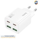 N56 to wieloportowa ładowarka sieciowa z nowoczesną technologią GaN, która zapewnia wysoką wydajność i bezpieczeństwo przy kompaktowych rozmiarach. Dzięki czterem portom (2× USB-C + 2× USB-A) ładowarka umożliwia jednoczesne zasilanie aż czterech urządzeń. Idealna do domu, biura i podróży.
