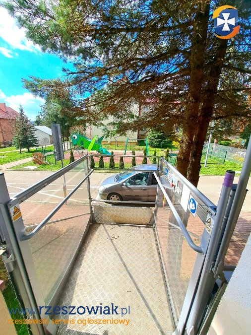 Lokal mieszkalny został przystosowany dla osoby niepełnosprawnej, posiada windę zewnętrzną i wykupioną na czas określony kopertę parkingową. Na parterze do dyspozycji salon, pokój, odrębne WC, łazienka z wanną z hydromasażem, kuchnia do własnej aranżacji, przedpokój z szafą i pawlaczem. Z salonu schody na dół, do umeblowanej sypialni w przyziemiu. Media: prąd, gaz, ogrzewanie, woda oraz ścieki miejskie, światłowód. Zamontowany monitoring. Na klatce schodowej domofon.