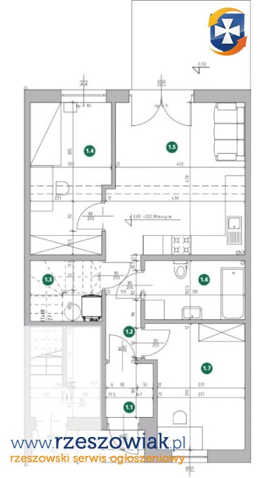 Mieszkanie o powierzchni 51.8 m2 składa się z: