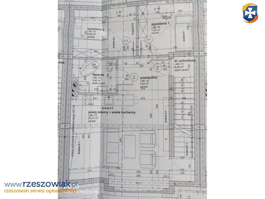 Na sprzedaż 4-pokojowe mieszkanie na I piętrze (plus poddasze użytkowe) pow. 82 m2 w stanie deweloperskim w nowym etapie inwestycji we wschodniej części Łańcuta.