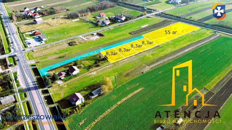 (ok. 8,30 ar to teren budowlany, reszta z potencjałem inwestycyjnym)