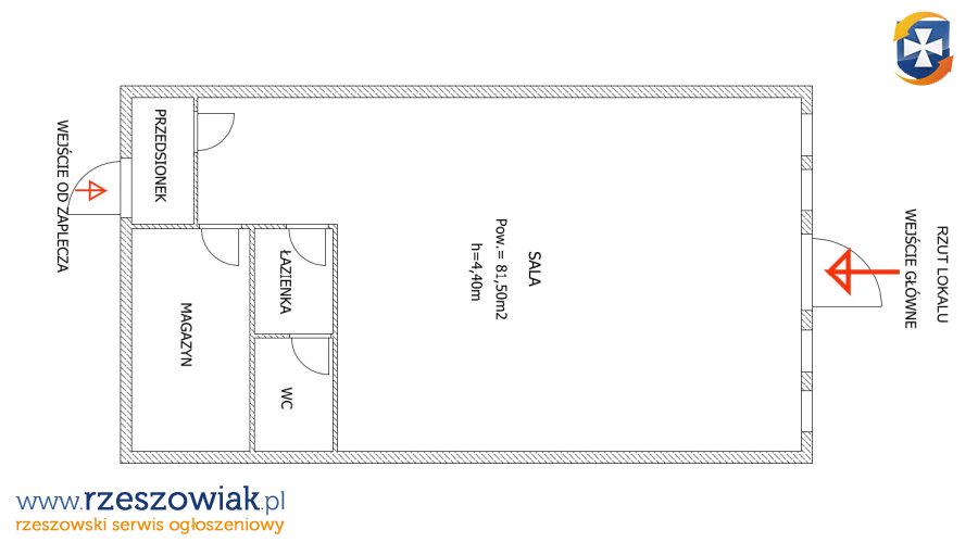 - przestronna sala sprzedaży z możliwością dowolnej aranżacji,