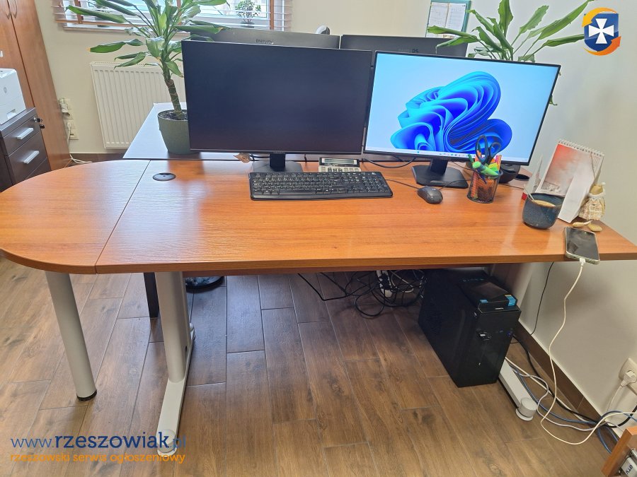 Biurko wyposażone jest w praktyczny kontenerek, zapewniający dodatkowe miejsce do przechowywania dokumentów i akcesoriów biurowych.