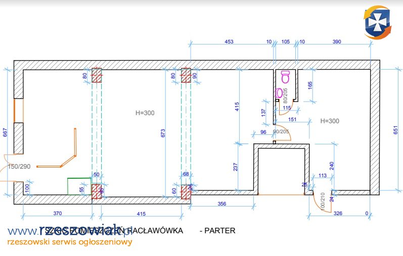 - Parter: 300 cm