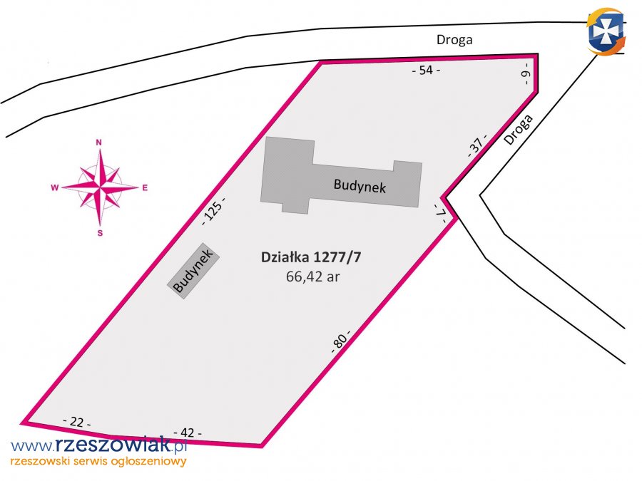 - Położenie na dużej działce 66,42 ar, zapewniającej przestrzeń i potencjał rozwoju.