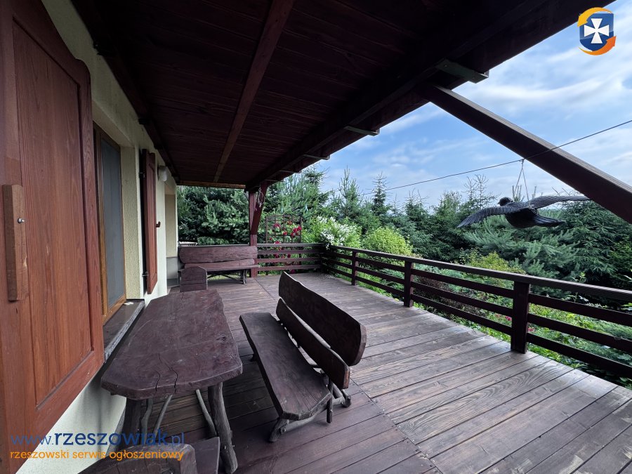Z górnego tarasu domu rozciąga się zachwycający krajobraz - zielone wzgórza, lasy i dolina rzeki, które zmieniają się wraz z porami roku. To miejsce, gdzie każdego dnia można podziwiać piękno Bieszczad i cieszyć się bliskością natury.