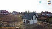 Dom nie jest podpiwniczony, kryty blachodachówką, z zamontowanymi balustradami francuskimi.
