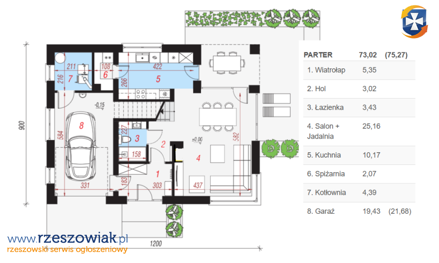 - powierzchnia użytkowa - 118m2 + garaż 19,5m2 + kotłownia 4,4m2 RAZEM: 141,78m2