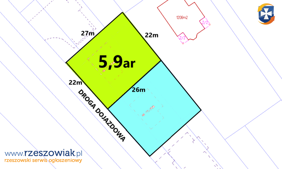 - kształt działki - zbliżony do kwadratu