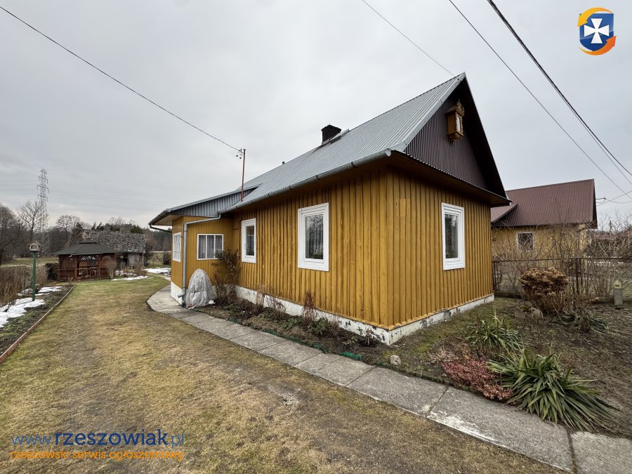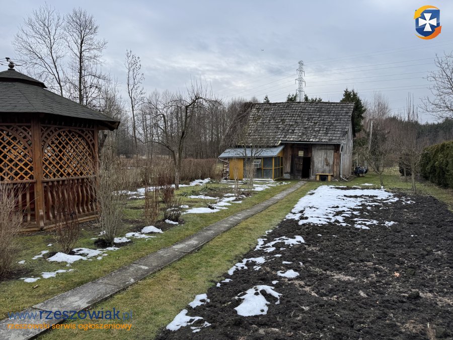 - parterowym domem o powierzchni użytkowej ok. 40 m2 wybudowanym w technologii drewnianej w 1936 roku, pokryty blachą,