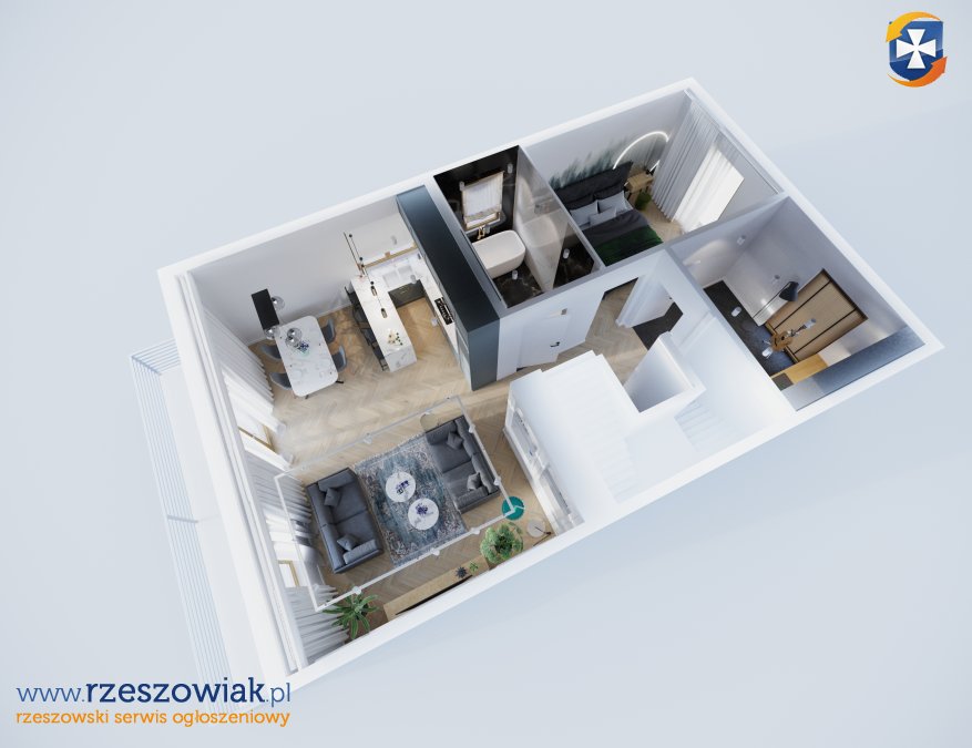 - otwarta przestrzeń do adaptacji (np. 3 pokoje + łazienka)