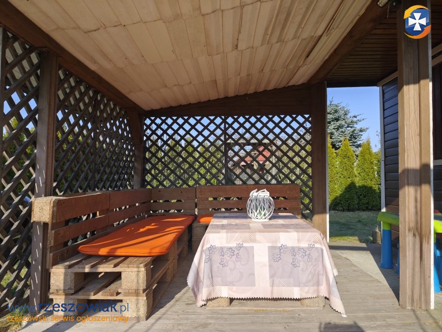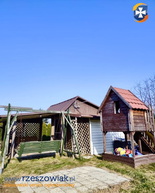 Działka idealna dla rodzin z dziećmi ze względu na mini plac zabaw- domek ze zjeżdżalnią, piaskownica i trampolina.