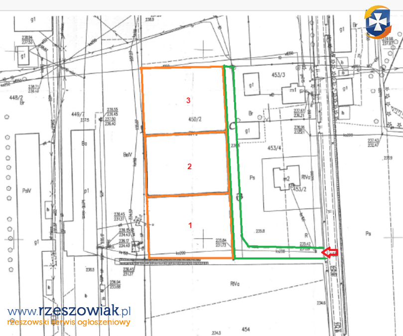 - Przeznaczenie: wydane warunki zabudowy (WZ) na budowę trzech budynków mieszkalnych jednorodzinnych (wolnostojących).