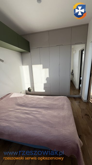 wszystkie meble wykonane na wymiar przez stolarza (kuchnia - lakier, sypialnia - akryl, łazienka - płyta laminowana); dużo miejsca do przechowywania