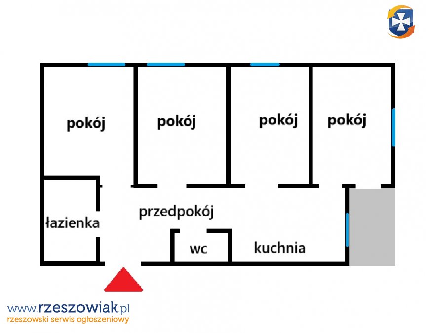 - 4 niezależne pokoje (istnieje możliwość zmiany układu np. na salon z kuchnią),
