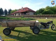 Na sprzedaż nietypowy, własnoręcznie zbudowany zestaw na bazie motocykla WSK, połączony z solidnym wozem transportowym. Idealny do gospodarstwa, działki, silnik 3-biegowy, napęd z motocykla WSK, konstrukcja motocykl + przyczepa/wozidło
