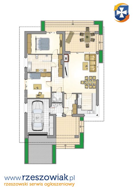 Przedstawiamy ofertę sprzedaży komfortowego, parterowego domu jednorodzinnego z jednostanowiskowym garażem, zadaszonym tarasem wypoczynkowym (ok 16 m2) â idealnym miejscem do relaksu przez cały sezon.