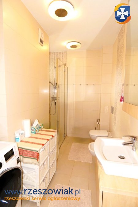 Mieszkanie urządzone w dobrym standardzie, drewniane podłogi, kuchnia w zabudowie wraz ze sprzętem (płyta, piekarnik, lodówka, zmywarka, mikrofalówka), łazienka z oknem, z prysznicem, bidetem, pralko-suszarką i zabudowanym schowkiem, w sypialni dwie duże głębokie szafy wnękowe, w przedpokoju szafa na wymiar. Całe mieszkanie urządzone gustownie i funkcjonalnie z optymalnym wykorzystaniem przestrzeni.