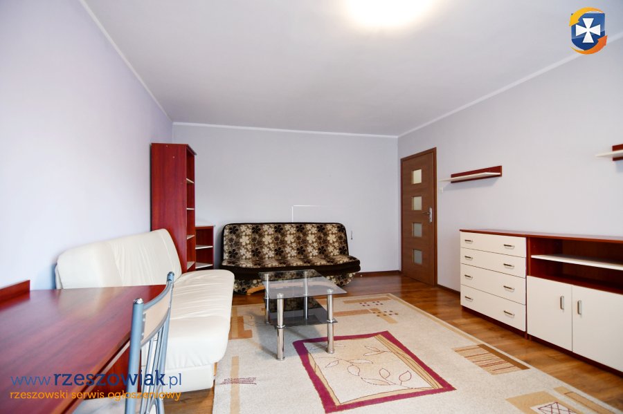 Na wyposażaniu mieszkania min. kuchnia w zabudowie z lodówką, płytą gazową, piekarnikiem i mikrofalówką. W pokoju 2 rozkładane kanapy, szafa, stolik szklany, komoda, regał, biurko z krzesłem. W łazience kabina prysznicowa, pralka, umywalka z lustrem. W przedpokoju szafa (nie ma na zdjęciach).