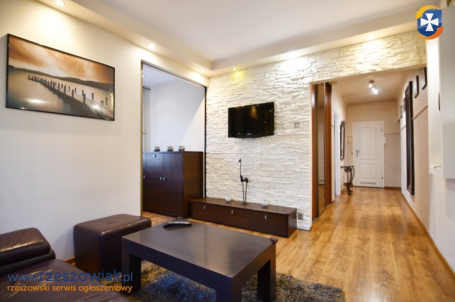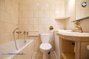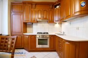 Na wyposażaniu mieszkania min. kuchnia w zabudowie z płytą gazową, piekarnikiem i lodówką, stół i krzesła. W salonie duża kanapa, ława, stolik RTV + telewizor, komoda, łóżko z materacem. W sypialni łóżko rozkładane (może być 1 lub 2 osobowe), szafa, komoda. W łazience wanna, pralka, umywalka z lustrem. W przedpokoju duża szafa w zabudowie z lustrem.
