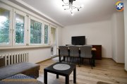 Mieszkanie umeblowane jak na zdjęciach. Na wyposażaniu mieszkania min. kuchnia w zabudowie z płytą indukcyjną, piekarnikiem, zmywarką oraz lodówką. W salonie narożnik z funkcją spania, stół i krzesła, szafa, komoda, telewizor. W obu sypialniach łóżko z materacem, szafa, komoda, biurko z krzesłem. W łazience kabina prysznicowa, pralka, umywalka z lustrem, geberit. W przedpokoju szafka na buty, wieszak, lustro.