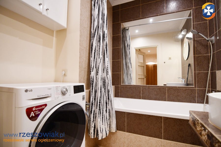 Na wyposażaniu mieszkania min. kuchnia w zabudowie z kuchenką gazową, piekarnikiem, mikrofalówką i lodówką. W salonie duża kanapa, stolik kawowy, stół i krzesła, regał, gablotka, stolik RTV. W każdym pokoju łózko, szafa, komoda/biurko. W łazience wanna, pralka, umywalka z lustrem. W przedpokoju bardzo duża szafa w zabudowie z lustrem, szafka na buty, wieszak.