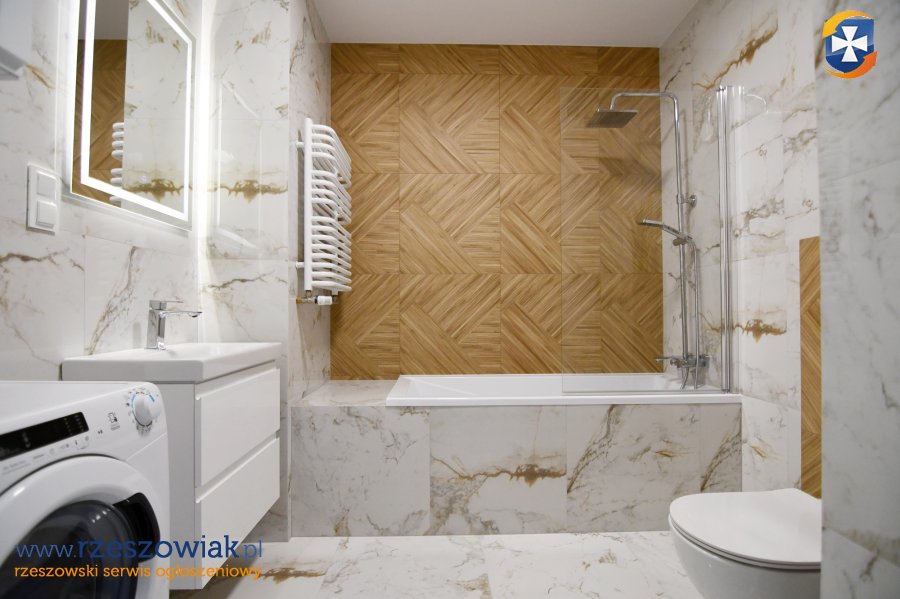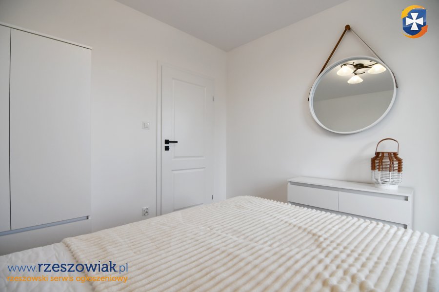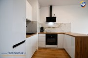 Na wyposażaniu mieszkania min. kuchnia w zabudowie z płytą indukcyjną, piekarnikiem, zmywarką i lodówką. W łazience wanna z parawanem i deszczownicą, pralka, umywalka z lustrem, geberit, szafka. Pokoje umeblowane jak na zdjęciach. W salonie kanapa, stolik kawowy, stolik RTV. W sypialni łóżko z materacem, szafa, komoda. W oknach będą zamontowane rolety (nie ma na zdjęciach).