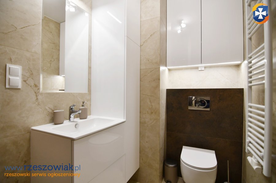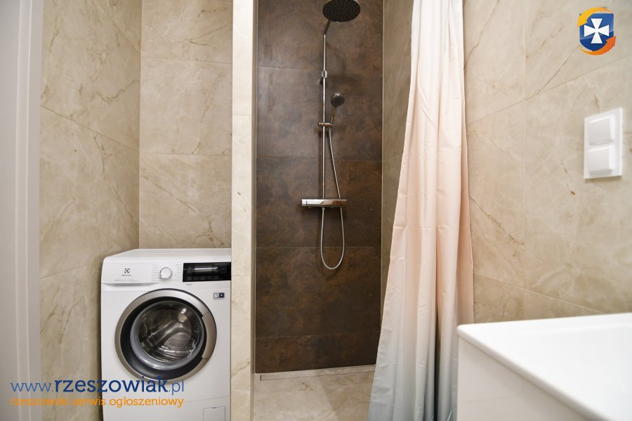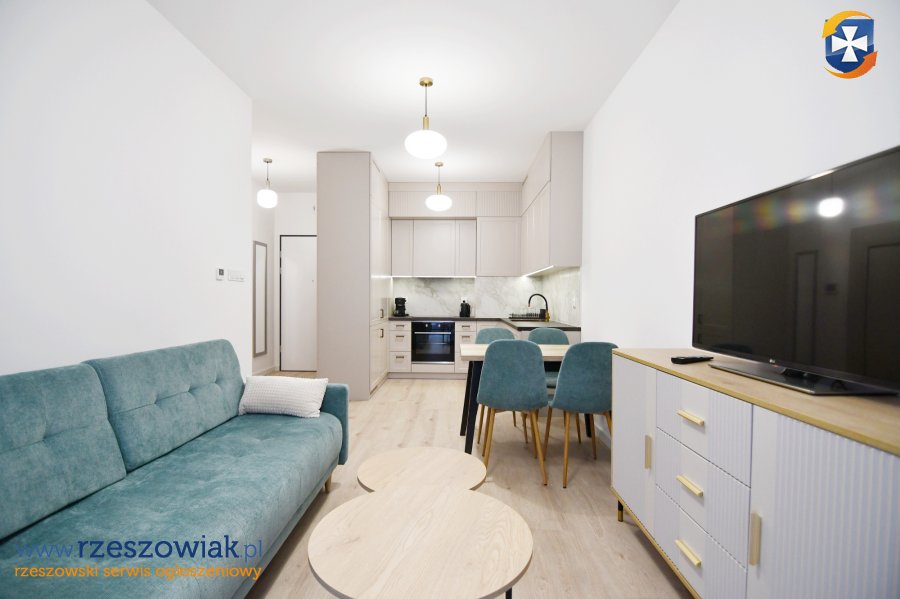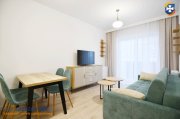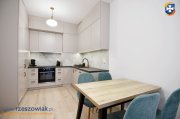 Na wyposażaniu mieszkania min. kuchnia w zabudowie z płytą indukcyjną, piekarnikiem, zmywarką i lodówką, czajnik oraz ekspres do kawy. W łazience prysznic, pralka, umywalka z lustrem, geberit, szafki. Pokoje umeblowane jak na zdjęciach. W salonie kanapa z funkcją spania, stół i krzesła, stolik kawowy, komoda + telewizor. W sypialni rozkładana kanapa o powierzchni spania 140x200 cm, szafa, komoda. W przedpokoju szafa w zabudowie, lustro.