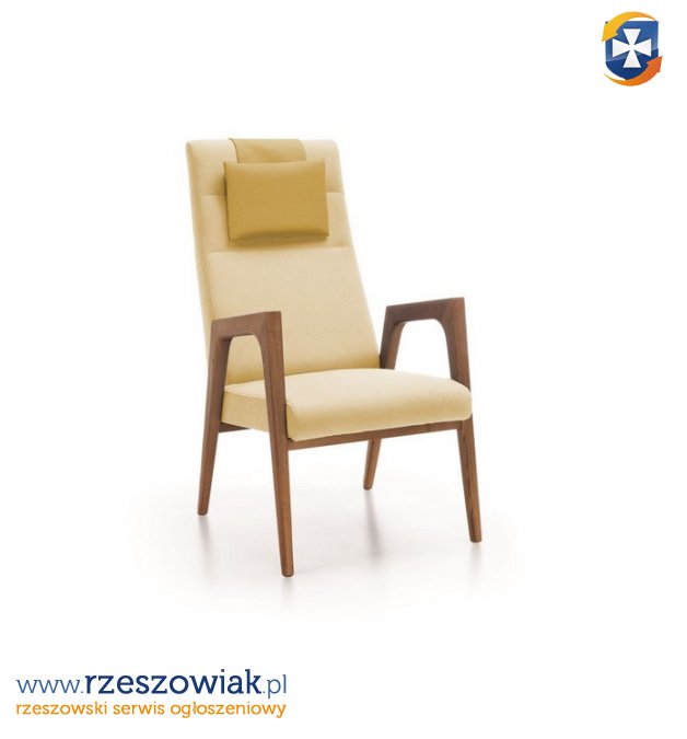 NANO Fotel - fotel z wysokim oparciem i drewnianymi poręczami