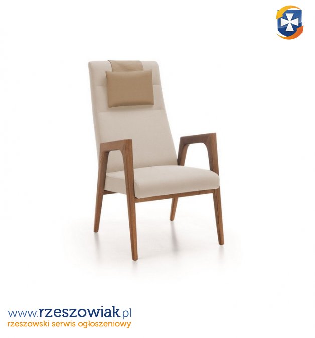 NANO Fotel - fotel z wysokim oparciem i drewnianymi poręczami