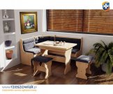 Narożnik kuchenny jest jednym z najpopularniejszych i najczęściej zamawianym produktem z mebli kuchennych. Cechuje go piękny wzór, ogromna różnorodność kolorów i tkanin wykończeniowych a co najważniejsze jedna z najniższych cen na rynku. Narożnik ten jest w stanie ożywić każdą nawet najzwyklejszą kuchnie, doda jej blasku i sprawi że czas spędzany w kuchni będzie bardzo przyjemny.