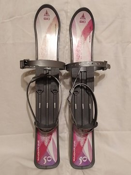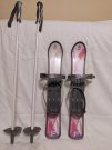 Narty dla dzieci o długości 50 cm różowe. Do tego kijki o długości 72 cm i wiązania przeznaczone jest do zwykłego obuwia zimowego o dł 13-20cm. Stan bardzo dobry prawie nieużywane. Marka SKI Junior.