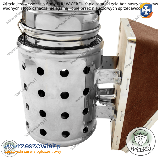 Posiadamy w ofercie nowy Nierdzewny Średni Podkurzacz Odymiacz Premium. Obdymiacz, podkurzacz pszczelarski posiada perforowaną chłodnicę â która stanowi osłonę przed poparzeniem. Podkurzacz wykonany jest ze stali nierdzewnej (korpus), natomiast mieszek z grubej skóry naturalnej i sklejki. Odymiacz składa się z korpusu, uchwytu do wieszania oraz Chłodnicy (która chroni przed poparzeniem) oraz wymiennego mieszka ze skóry naturalnej. (istnieje możliwość wymiany miecha).