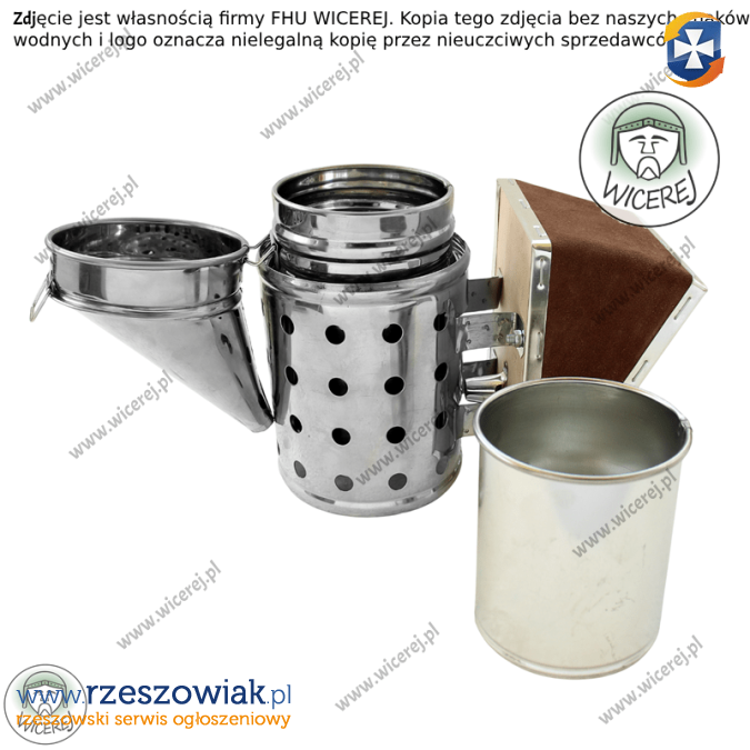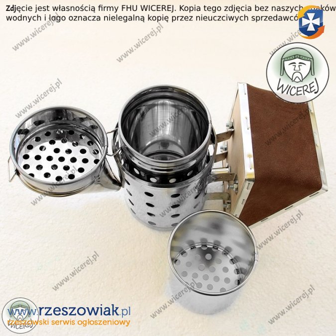 Posiadamy w ofercie nowy Nierdzewny Średni Podkurzacz Odymiacz Premium. Obdymiacz, podkurzacz pszczelarski posiada perforowaną chłodnicę â która stanowi osłonę przed poparzeniem. Podkurzacz wykonany jest ze stali nierdzewnej (korpus), wkład ze stali ocynkowanej, natomiast mieszek z grubej skóry naturalnej i sklejki. Odymiacz składa się z korpusu, wyjmowanego wkładu, uchwytu do wieszania oraz Chłodnicy (która chroni przed poparzeniem) oraz wymiennego mieszka ze skóry naturalnej. (istnieje możliwość wymiany miecha).