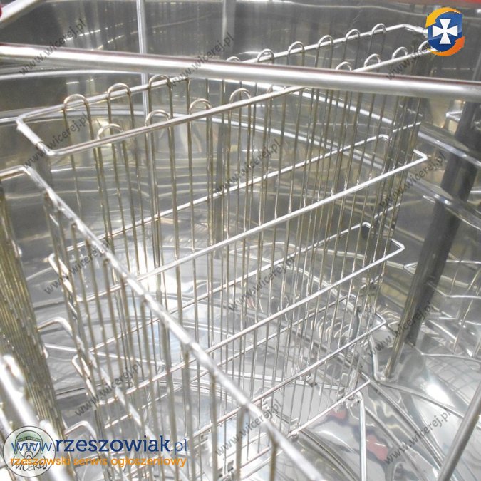 *Kosz miodarki wykonany z nierdzewnych kwasoodpornych prętów (AISI 304), które rozmieszczone są tak, aby zabezpieczyć ramki przed wyłamywaniem się plastrów w trakcie wirowania.