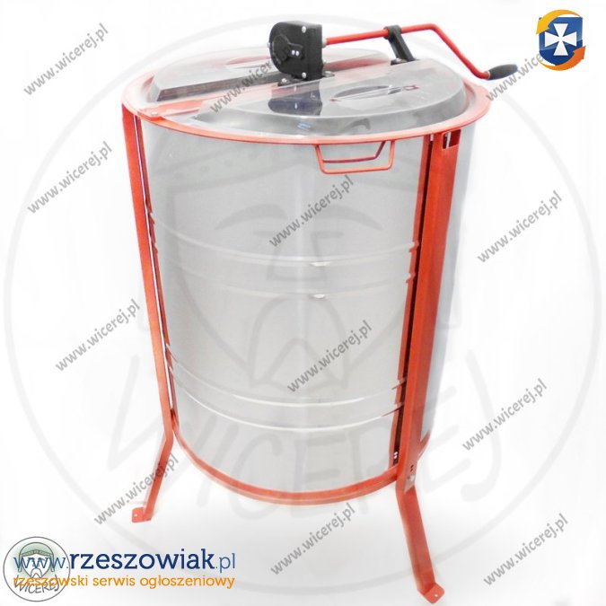 Jest to model miodarki z 4 kasetami uniwersalnymi odwracalnymi, tzw. miodarka kasetowa, w której nie trzeba wyciągać i przekładać ręcznie ramek na drugą stronę po ich odwirowaniu - w tym modelu odwraca się w miodarce kasety. Miodarka jest uniwersalna - maksymalny rozmiar ramki, jaką można używać w miodziarce to Dadant Gniazdowa. Do Wirówki pasować będą też ramki Wielkopolskie, Warszawskie Zwykłe, Warszawskie Poszerzane. Miodarkę wyposażono w napęd ręczny (koła zębate napędu to metal). Dodatkowo dno miodarki wykonano w kształcie stożka, aby ułatwić spływanie miodu.