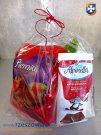 W skład prezentu wchodzą: pralinki, pierniczki, karmelki nadziewane oraz dwie czekolady nadziewane. Możliwe również większe zestawy.