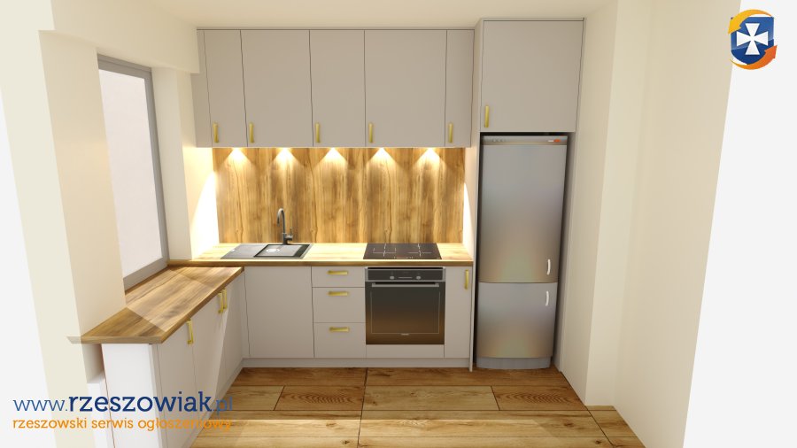 - kuchnia na wymiar w kolorze kaszmiru z nowym AGD (projekt wg wizualizacji)
