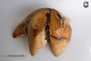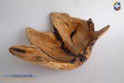 Niewielka misa - 28 cm po przekątnej - szeroka skala barw dość jasnego drewna.