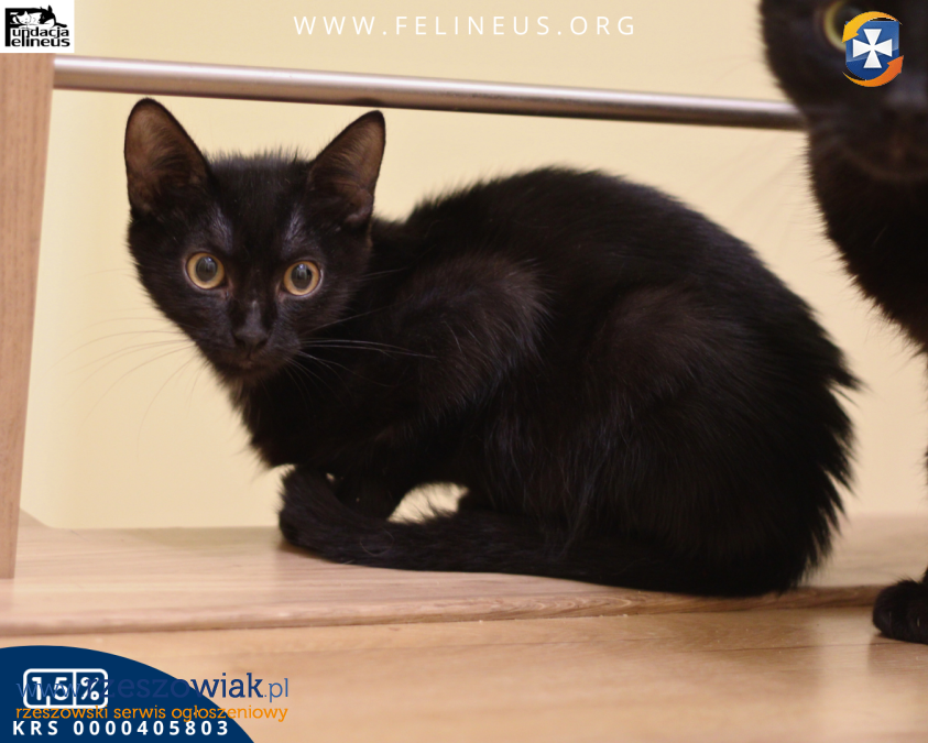 Nora to urocza czarnulka urodzona w maju 2025, udaje spokojniejszą i grzeczniejszą od swych braci, ale to tylko pozory. Tak samo jak i oni uwielbia wyścigi, grę w piłkę i wspinaczki wysokodrapakowe. Patrzy na świat wielkimi, oczami i kalkuluje sprytnie w małej główce - aha, przyszli mnie pogłaskać, więc nie ma co zgrywać nieśmiałej, tylko trzeba nadstawiać grzbiet do głaskania. Nora bardzo szybko przekonuje się do nowych ludzi, umie już mruczeć, przytulać się i spać w łóżku. Wyrośnie z niej jeszcze większa przylepka.