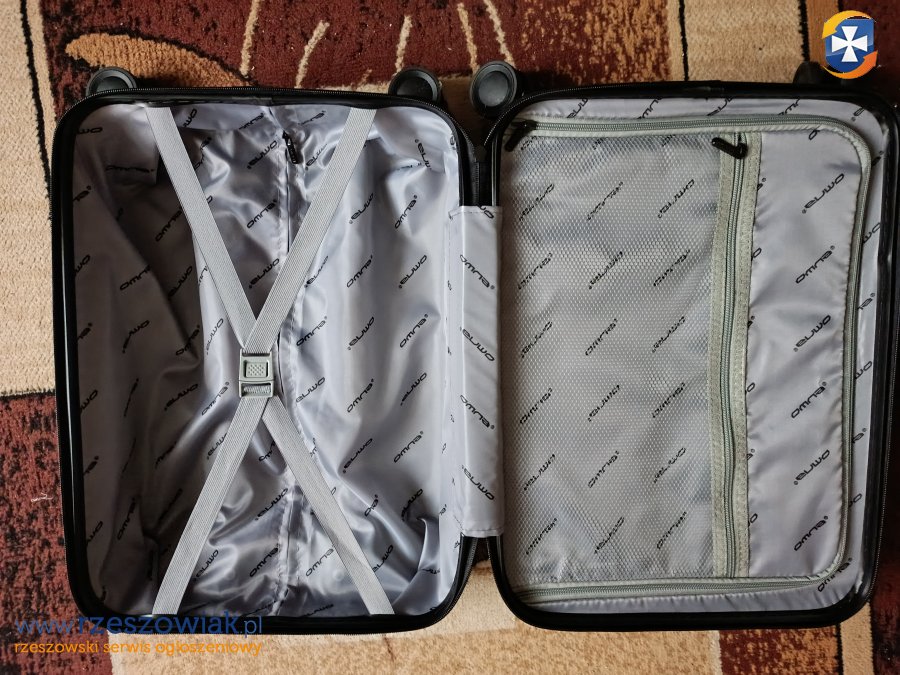 Nowa czarna walizka kabinowa. Doskonała na krótkie podróże. Solidna konstrukcja zapewnia bezpieczne przechowywanie rzeczy. Idealna dla osób podróżujących lekkim bagażem.