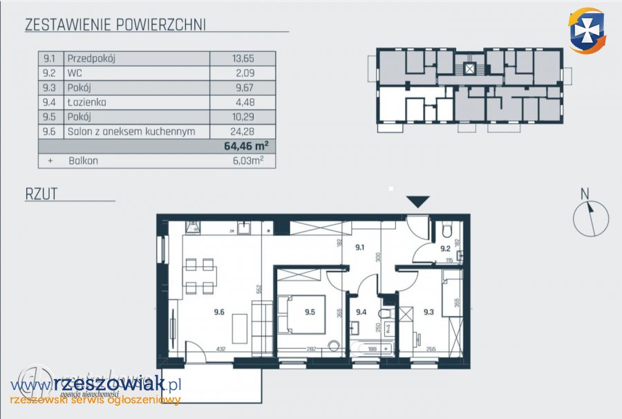 64.46m2- 3 pokoje, balkon o pow. 6.03m2 cena 638 154,00 zł