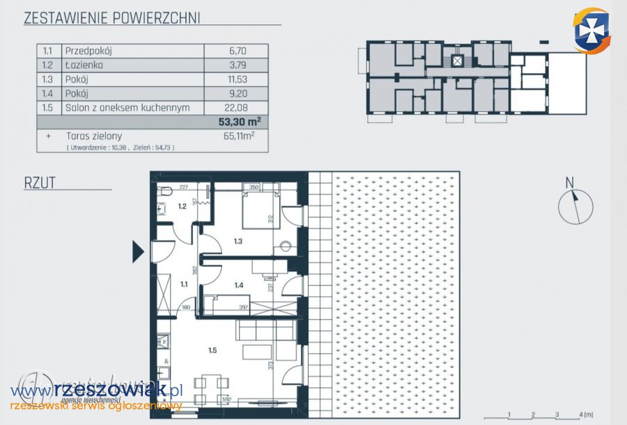 53.30m2- 3 pokoje, taras zielony o pow. 65.11m2 cena 580 970,00 zł