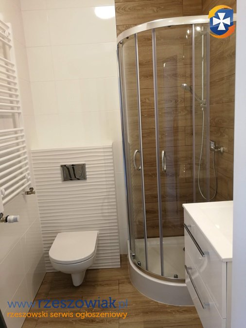 Łazienka: elegancka i nowoczesna, z kabiną prysznicową, toaletą i praktycznymi rozwiązaniami, które ułatwiają codzienne użytkowanie.