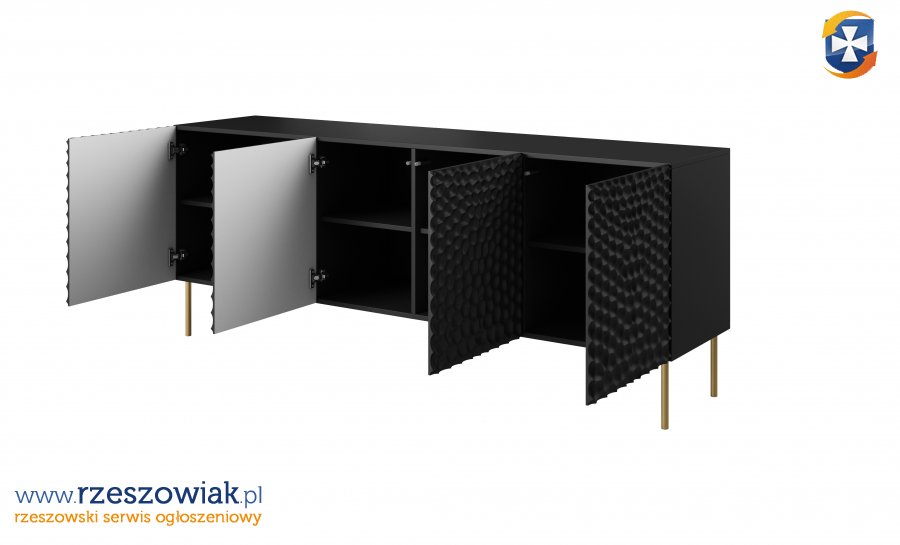 Komoda HOLE sprawi, że nie będziesz mógł oderwać od niej wzroku. Niezwykle dekoracyjna oraz bardzo praktyczna. Zachwyca niespotykanie frezowanymi frontami. Dużym atutem są również wysokie, metalowe nóżki, dzięki którym ułatwi to codzienne utrzymanie porządku.