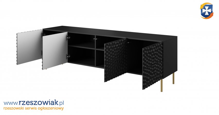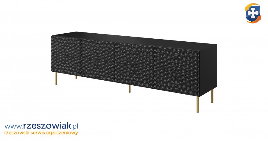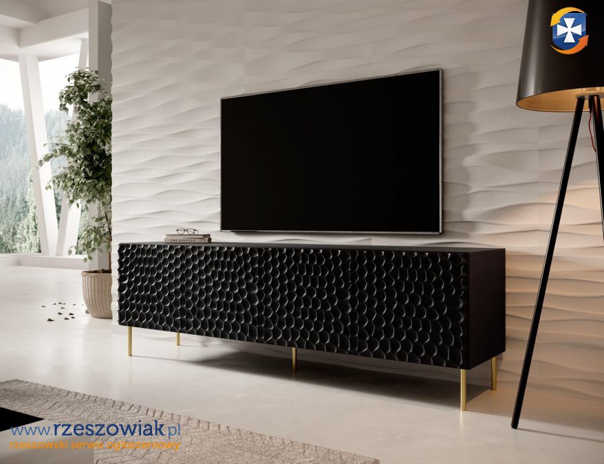 Szafka RTV HOLE sprawi, że nie będziesz mógł oderwać od niej wzroku. Niezwykle dekoracyjna oraz bardzo praktyczna. Zachwyca niespotykanie frezowanymi frontami. Dużym atutem są również wysokie, metalowe nóżki, dzięki którym ułatwi to codzienne utrzymanie porządku. Funkcjonalna i stylowa szafka pod telewizor jest niezbędnym wyposażeniem każdego salonu.
