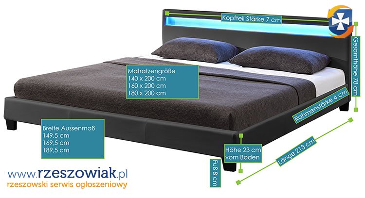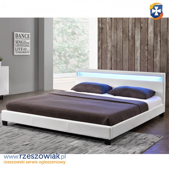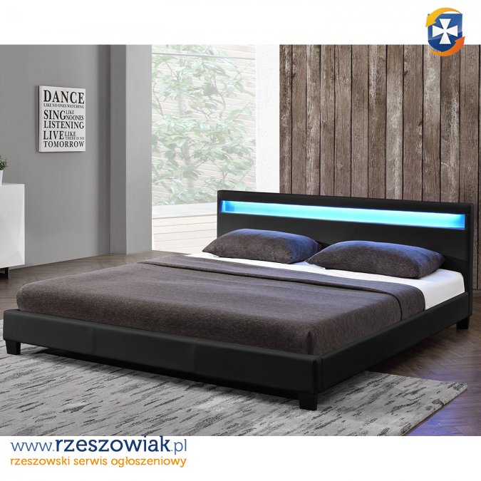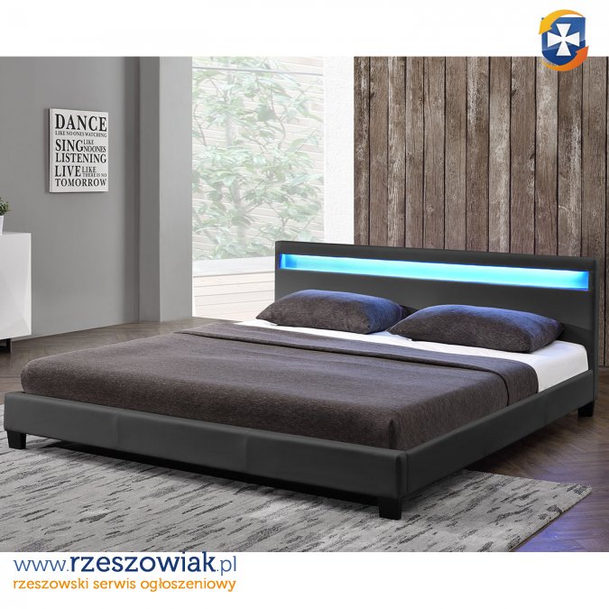 Nowoczesne łóżko tapicerowane serii 900 z eco skóry łatwe w pielęgnacji, z stelażem sprężynującym wymiar 140/160/180 x 200 cm oraz z podświetleniem led w zagłowiu