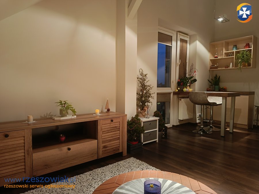 Dwupoziomowe: 34 M2 + antresola - sypialnia 10 M2.