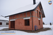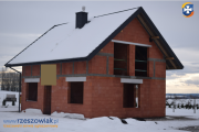 Dom posiada 2 kondygnacje (parter i poddasze), 5 pokoi w tym salon z jadalnią połączony z kuchnią z wyjściem na taras od strony południowo-zachodniej. Wewnątrz budynku są wykonane: wstępne wylewki, położone przewody pod kanalizację i wodę, przewód kominowy pod kominek w salonie, schody betonowe na poddasze, sufity żelbetowe. Dach dwuspadowy pokryty blachodachówką, orynnowanie.