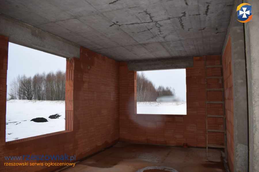 Dom posiada 2 kondygnacje (parter i poddasze), 5 pokoi w tym salon z jadalnią połączony z kuchnią z wyjściem na taras od strony południowo-zachodniej. Wewnątrz budynku są wykonane: wstępne wylewki, położone przewody pod kanalizację i wodę, przewód kominowy pod kominek w salonie, schody betonowe na poddasze, sufity żelbetowe. Dach dwuspadowy pokryty blachodachówką, orynnowanie.